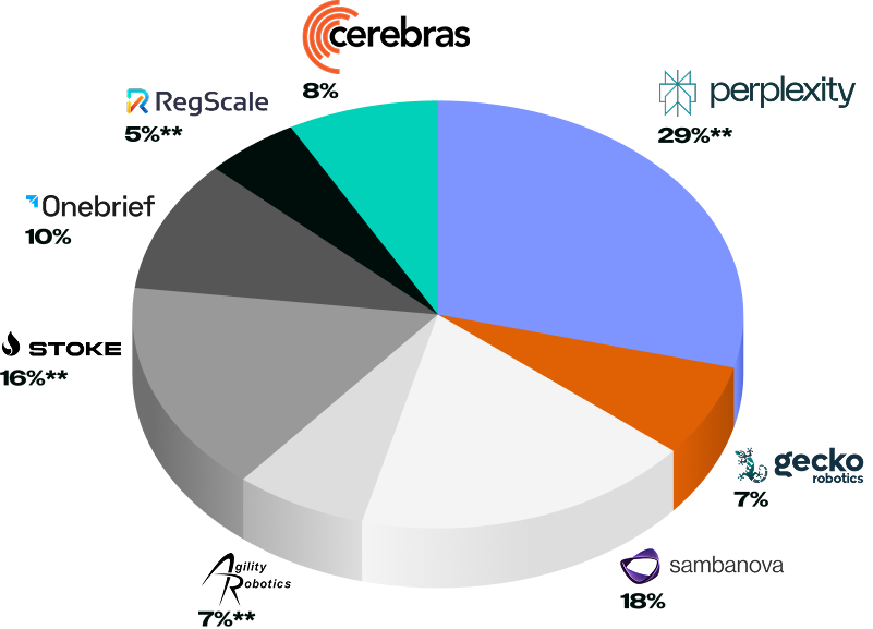 After five sell-outs, we’re excited to launch one of our most exciting Funds yet. Our new A.I. Nexus Fund offers exposure to ChatGPT competitor Perplexity,* Sequoia-backed Cerebras, and DeepSeek partner SambaNova — all of which have sold out on our platform before. Gain exposure to these leading AI firms and other companies leveraging AI across robotics (Agility Robotics,* Gecko Robotics), SaaS (OneBrief, RegScale*), and space tech (Stoke Space*).